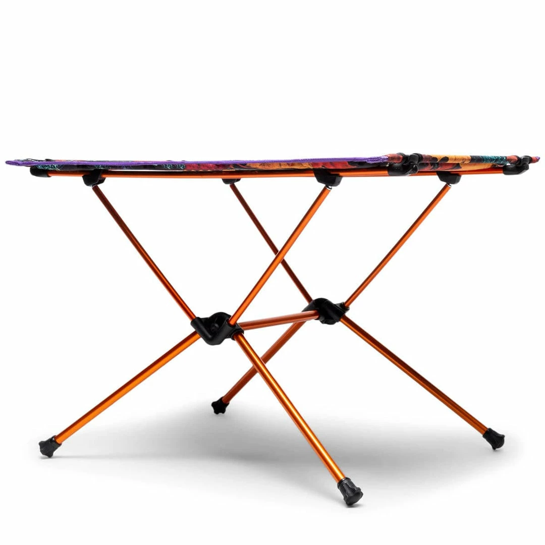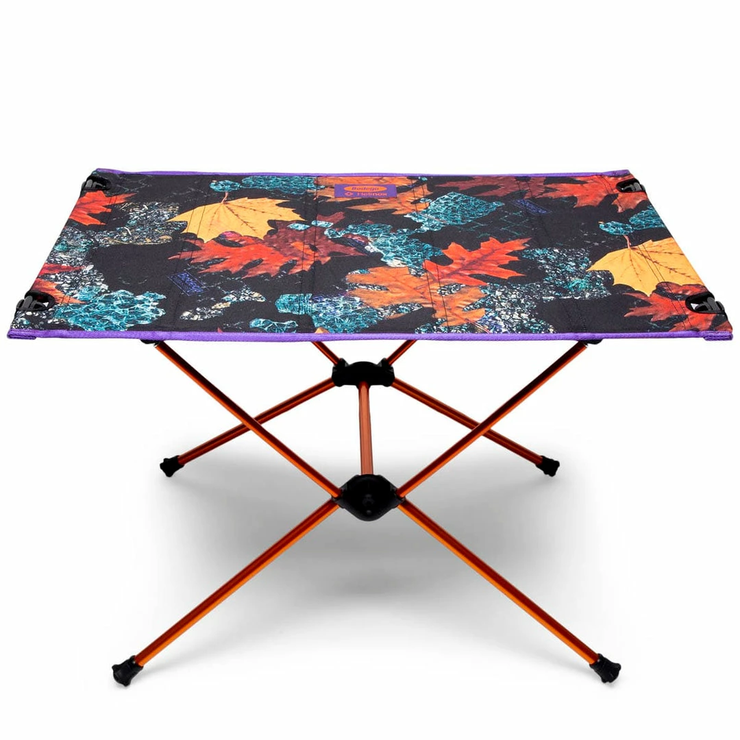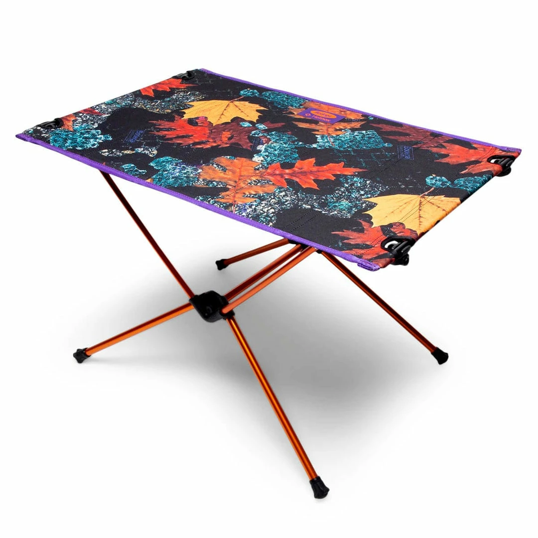 Comprised of custom versions of Helinox’s lightweight, durable Chair One, Cot One, and Table One, the collection features an original camouflage pattern depicting fallen autumn leaves, broken glass, and a little asphalt and fencing action thrown in for good measure. A truly unique motif, it can represent any contrast you can think of, no matter how literal or figurative and wraps itself in the most packable, functional, and versatile gray area available.Β