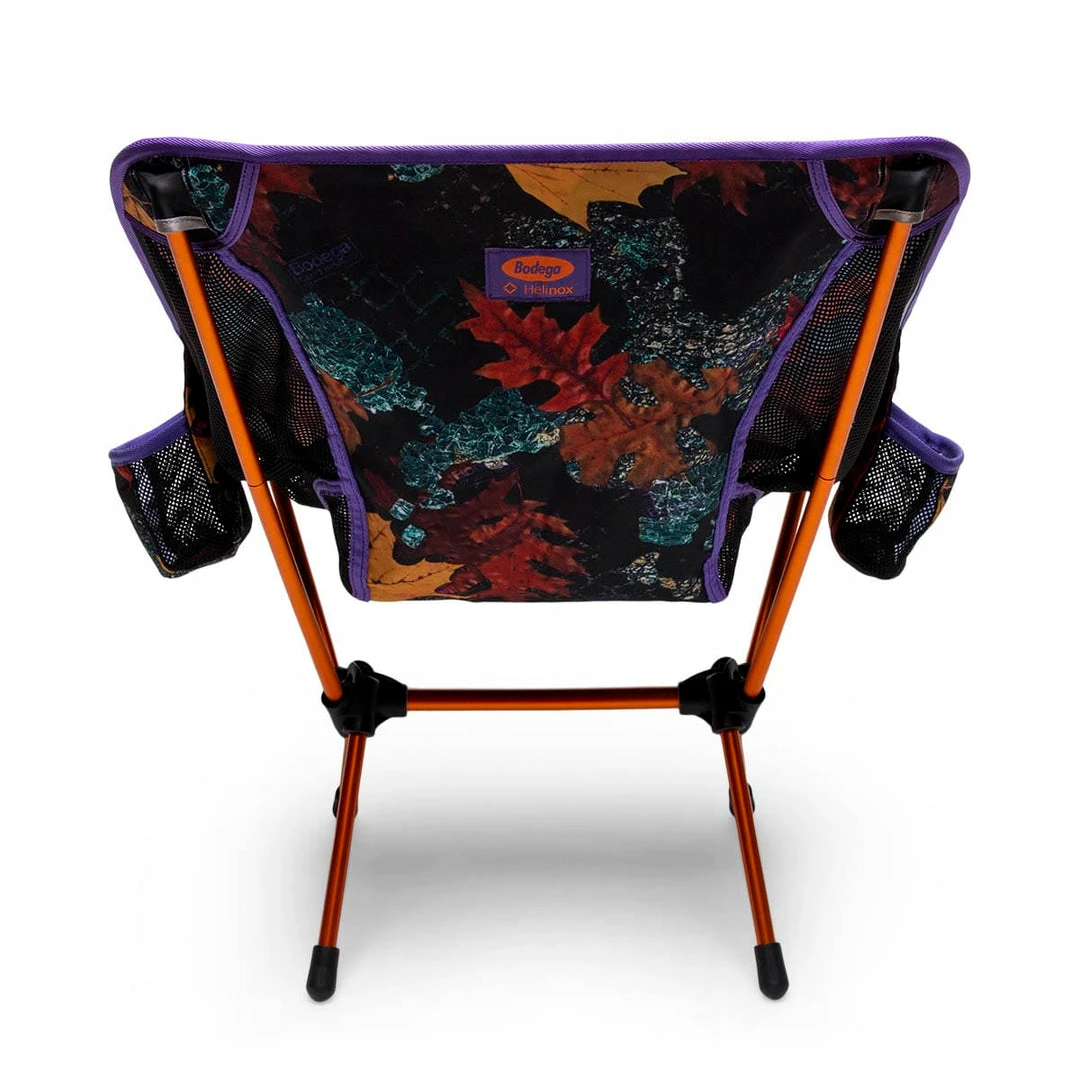 Comprised of custom versions of Helinox’s lightweight, durable Chair One, Cot One, and Table One, the collection features an original camouflage pattern depicting fallen autumn leaves, broken glass, and a little asphalt and fencing action thrown in for good measure. A truly unique motif, it can represent any contrast you can think of, no matter how literal or figurative and wraps itself in the most packable, functional, and versatile gray area available.Β