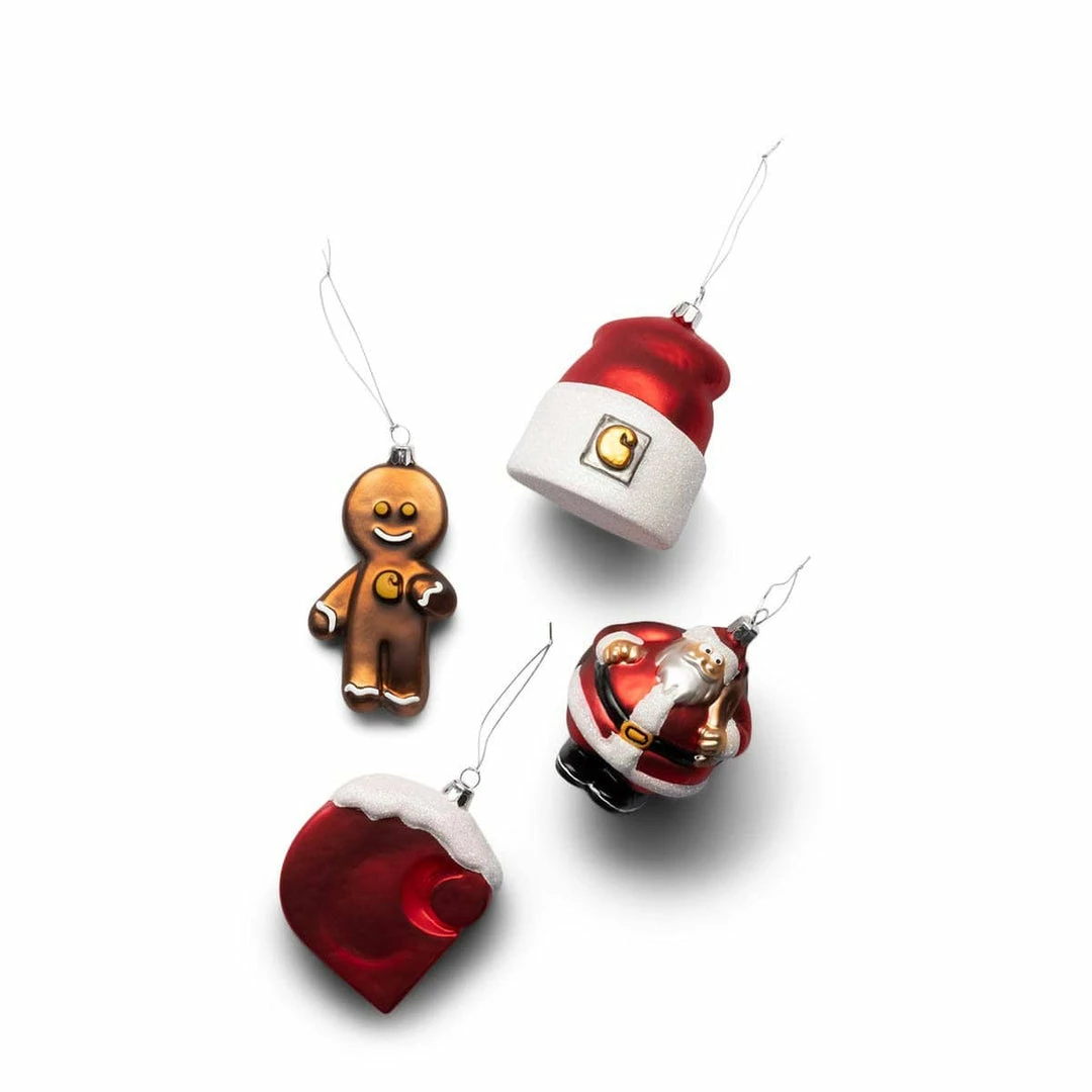 The Christmas Ornaments Set is handmade in Poland and constructed from glass. Includes four ornaments of various sizes.