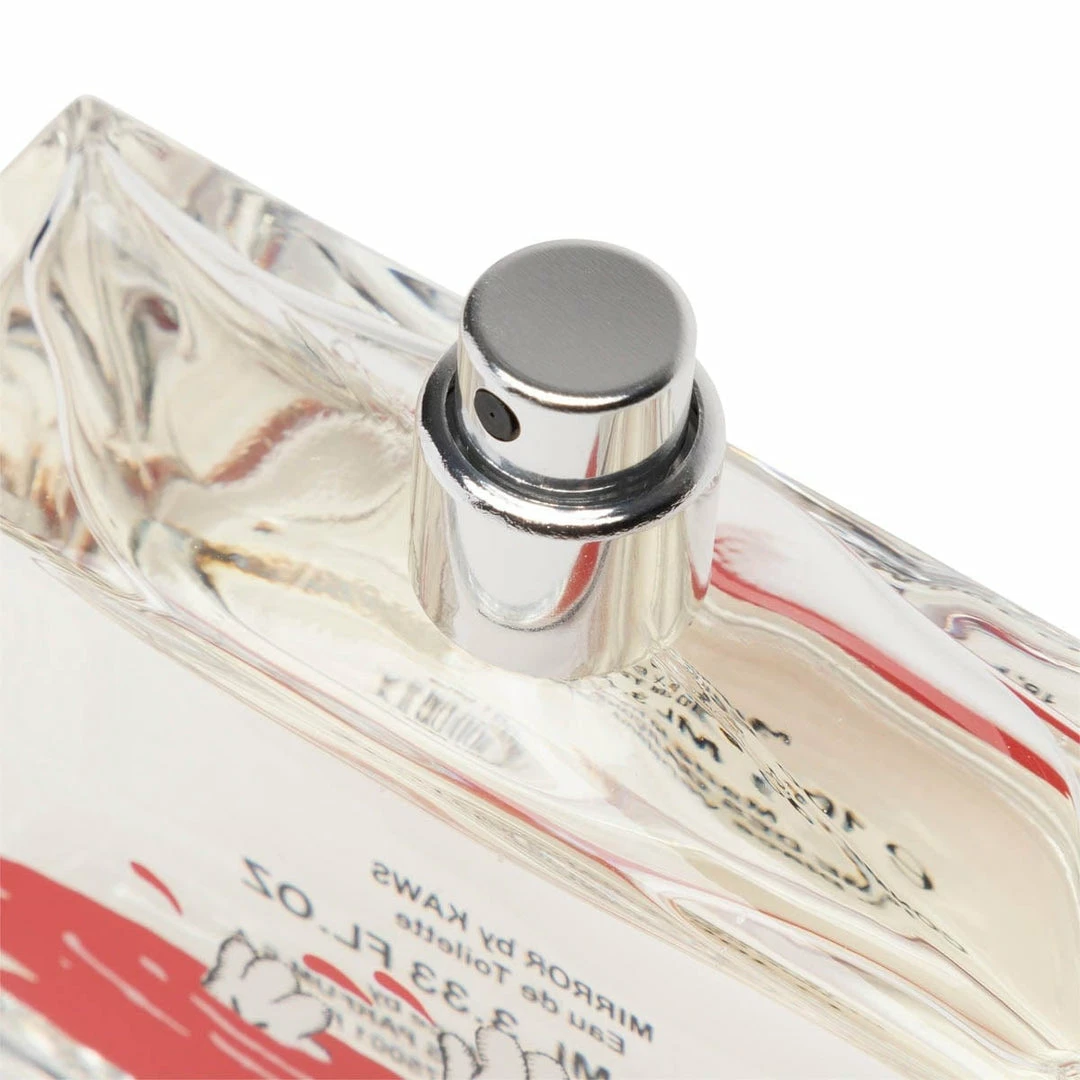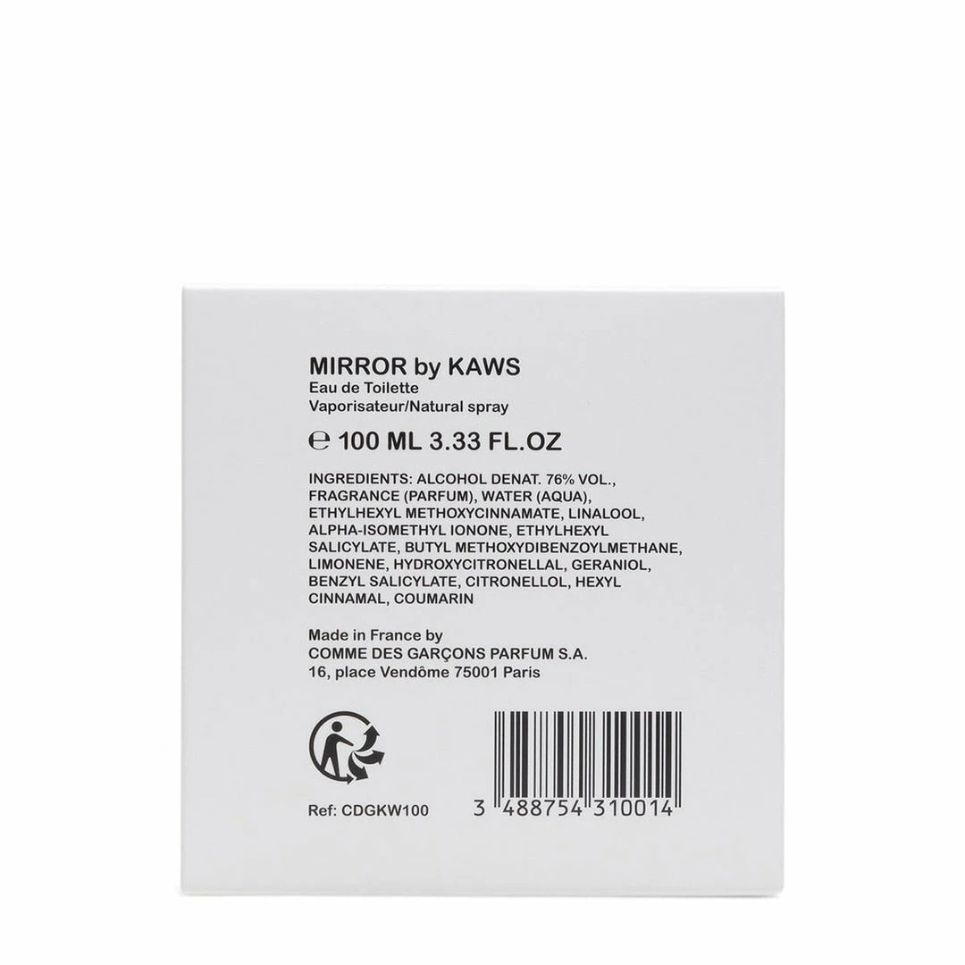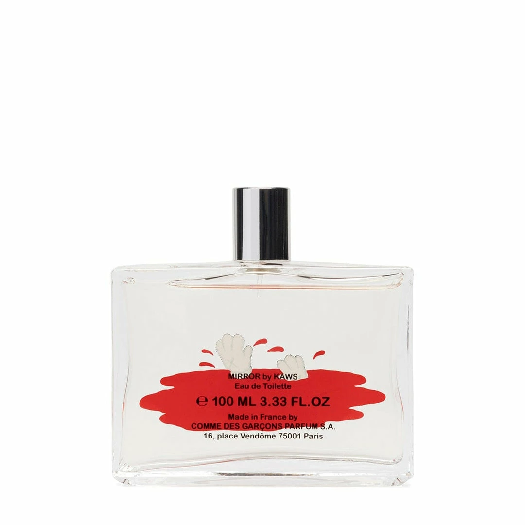 COMME des GARĂONS and KAWS present the artistâs first scent, MIRROR. Inspired by KAWSâs multi-faceted practice, MIRROR brings a complex blend of optimistic fragrant notes together in collaboration to create a musky floral scent. The bottle design is a nod to the artistâs iconic COMPANION character who materializes across a variety of medium, from fine art to consumer products, leveling the hierarchies between âhighâ and âlowâ.
