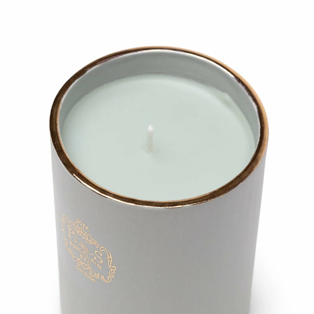 - Handmade porcelain container with a 22k gold painted rim
