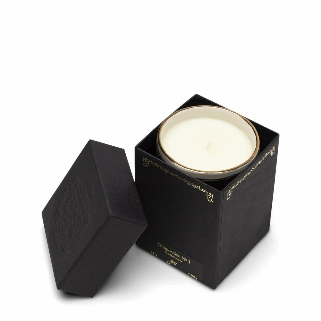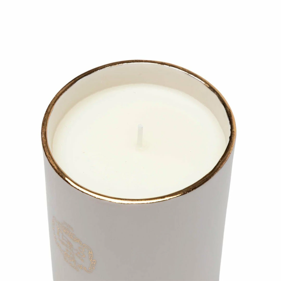 - Vessel: Handmade porcelain container with a 22k gold painted rim.
