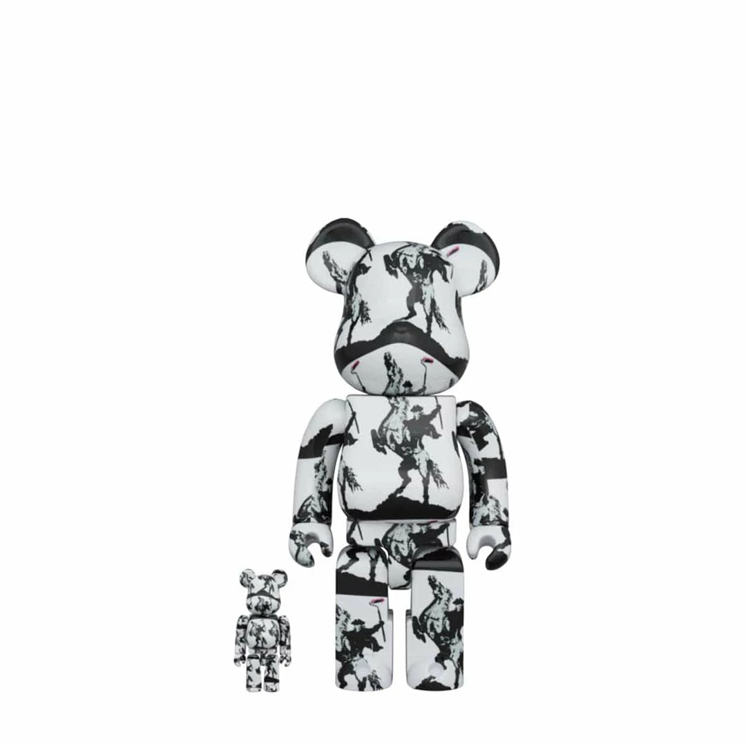 Existing somewhere between figurines and art, the BE@RBRICK Highwayman 100% & 400% Set brings Banksy’s iconic print to the 3-D world, with the help of 2 humanoid bear figures ready for a revolution.