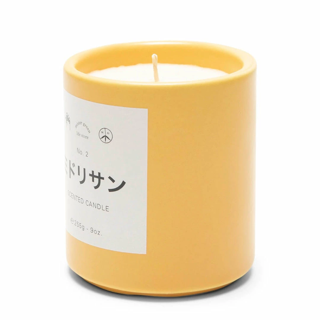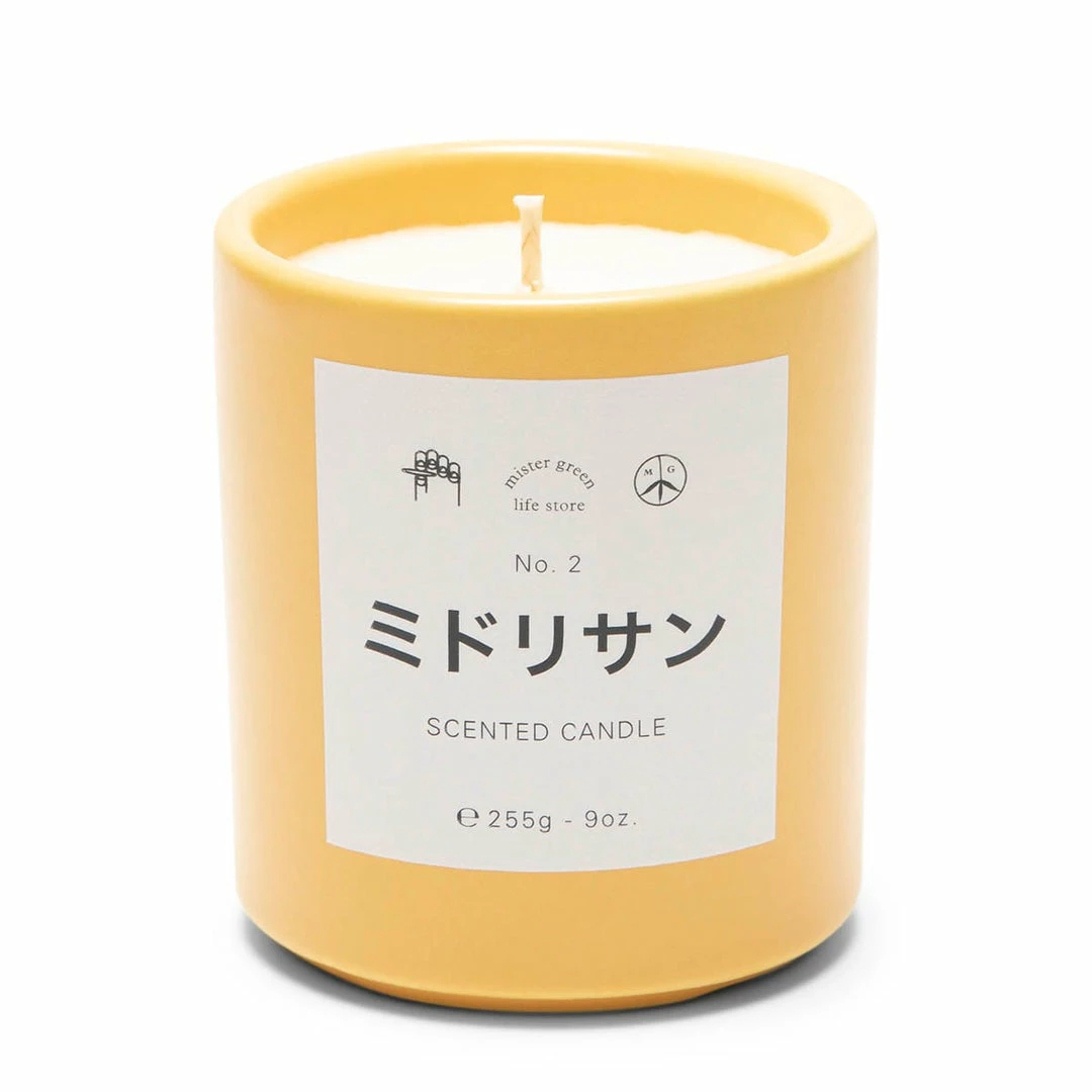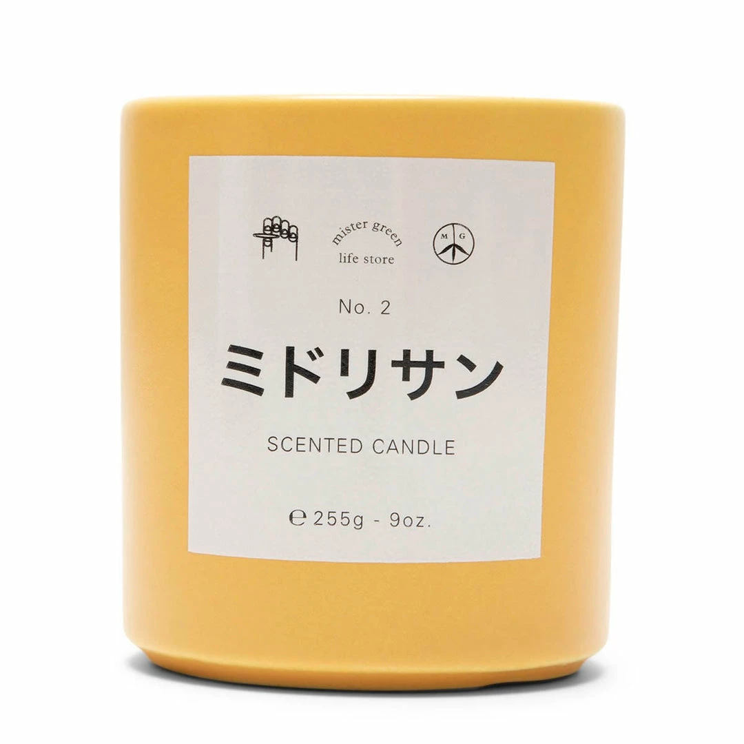 The Midori-San Candle has notes of citrus, cannabis, softwood, tobacco, and green flowers.