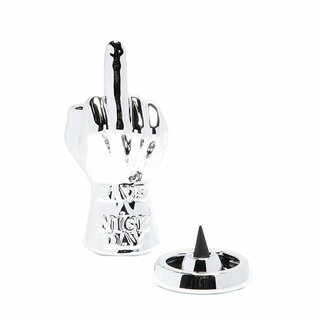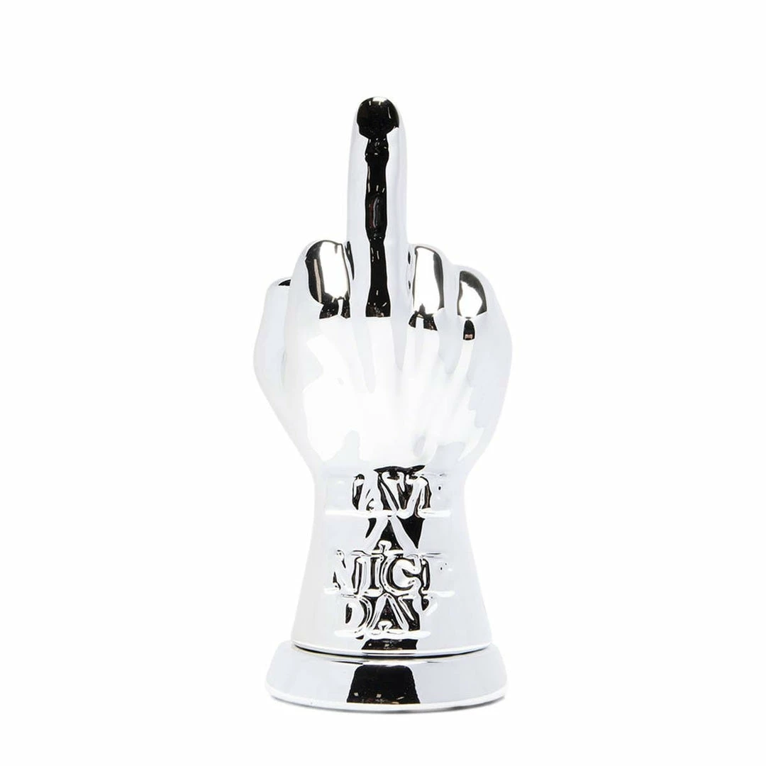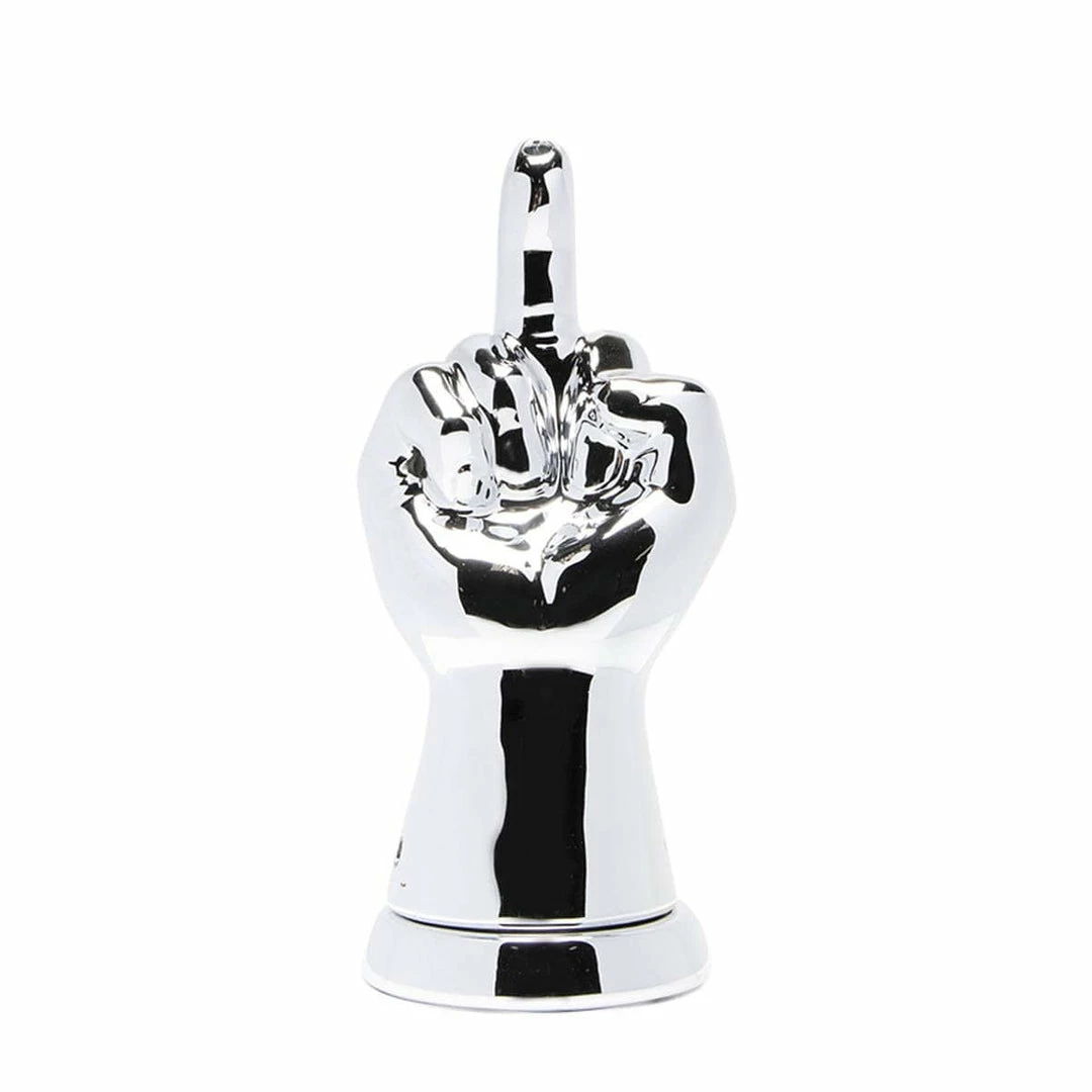 Sometimes a simple universal hand gesture just isn’t enough to get your point across. Make that hand a metallic silver with a finger that emits smoke, and your message will be hard to ignore.Β