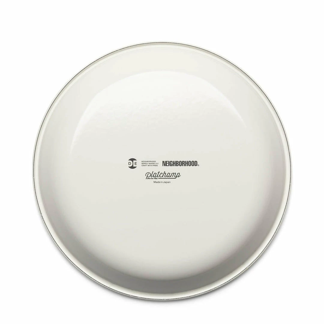 Enamel plate designed in collaboration with PLATCHAMP who are known for using original moulds to create high quality made in Japan enamel products and camping tools. Large and versatile 230(9 1/16 inch) mm size with just the right amount of depth that can be used for sharing or for soups. ODE logo placement on top and bottom of plate.Β