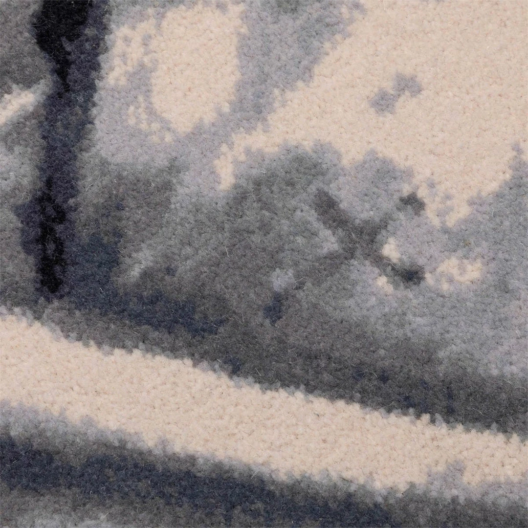 Large wool/nylon blend rug with Booze Reaper motif. Detailed patterns and shadows created by weaving for a three dimensional effect.